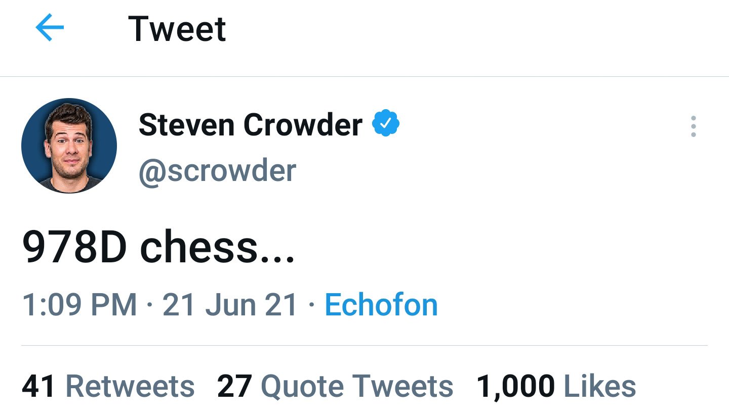 Check out steven crowder (@scrowder) twitter statistics like the number of followers and accounts that steven crowder is following.